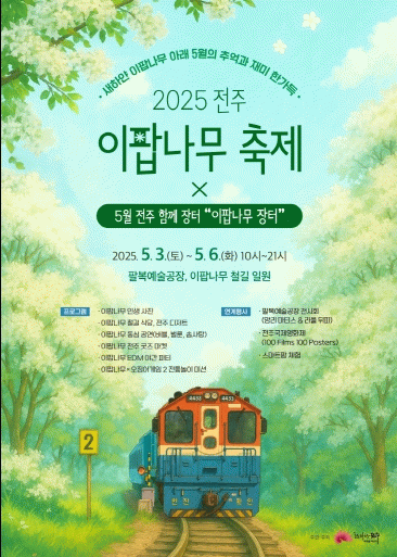 전주시는 오는 5월 3일부터 6일까지 4일간 팔복동 이팝나무 철길과 팔복예술공장 일원에서 ‘2025 전주 이팝나무 축제’의 부대행사인 ‘전주 이팝나무 장터’가 열린다고 29일 밝혔다.