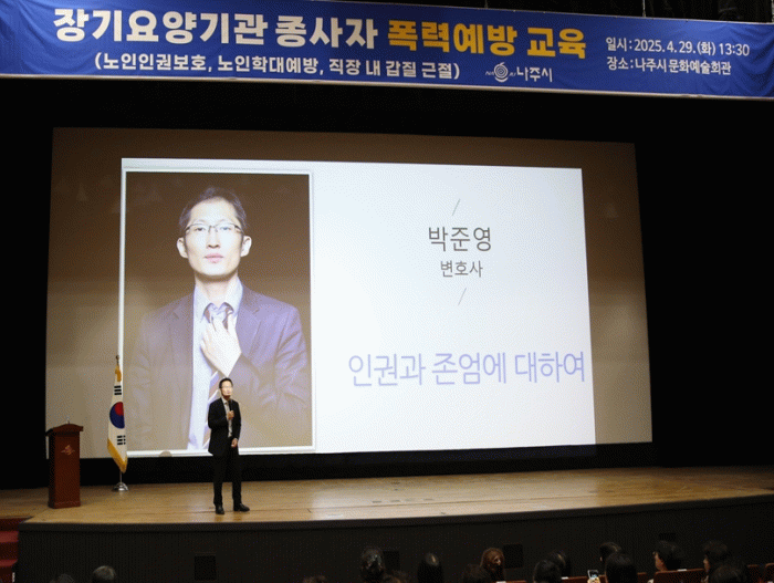 나주시 관계자는 “이번 교육을 통해 노인돌봄기관 내 인권 보호에 대한 인식이 높아지고 종사자들의 근무 환경 또한 개선되기를 기대한다”며 “앞으로도 종사자의 역량 강화와 어르신의 인권 보호를 위한 다양한 교육 프로그램을 지속적으로 추진할 계획”이라고 밝혔다.