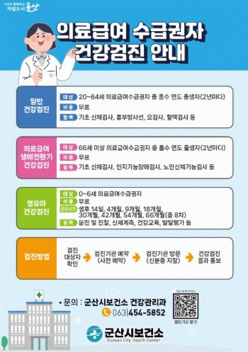 군산시보건소 관계자는 “건강검진은 질병을 조기에 발견하고 치료할 수 있는 가장 기본적인 방법.”이라며, “하반기에는 검진 예약이 몰려 대기시간이 길어질 수 있는 만큼, 비교적 여유로운 상반기 중 검진을 받으시길 권장한다.”라고 당부했다.