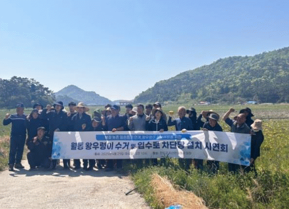 특히 이날 우렁이생산자협회에서는 논 물대기 전 외부에서의 왕우렁이 유입을 막기 위해 단지 용수로에 ‘ㄷ자’형 차단망 설치 시연까지 선보여 농업인에게 왕우렁이 수거 및 관리의 중요성을 홍보하는 등 경각심을 심어 줬다.