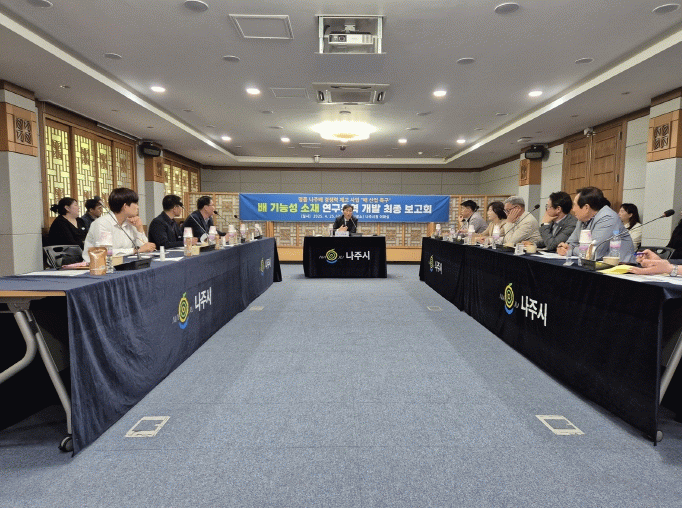나주시는 최근 시청 이화실에서 배박(배껍질)에 다량 함유된 화장품 원료(알부틴)를 저비용으로 추출, 이를 상용화하기 위한 연구용역 최종 보고회를 진행했다고 29일 밝혔다.