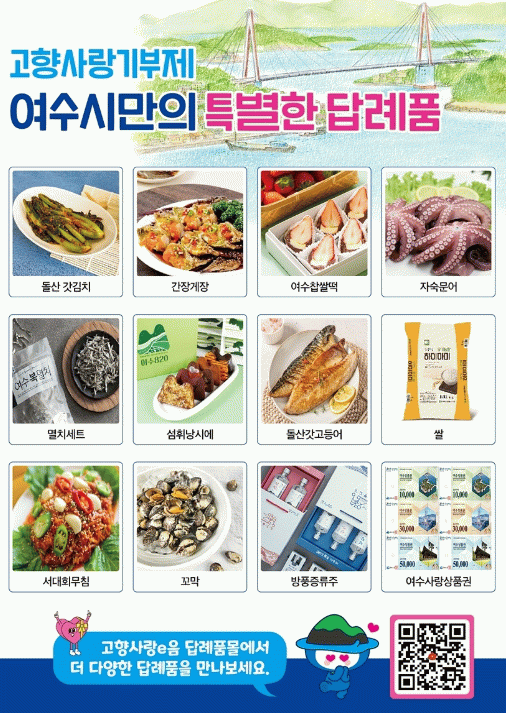 모집 대상은 △관광 서비스 △농·축·수산물 △가공식품 △생활용품 등 4개 분야로, 여수시에 사업장을 둔 개인사업자, 법인, 단체로서 답례품을 직접 생산·배송할 수 있는 업체다.