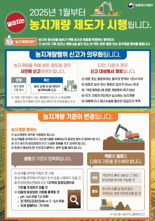 농지개량행위 신고제는 폐기물 불법 매립 및 무분별한 성토로 인한 환경오염과 농지 훼손 문제를 예방하고, 농지의 효율적 관리와 생산성 향상을 도모하기 위해 도입된 제도다.