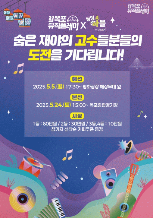 현장 심사를 통해 실력자 4명을 선발, 2025 목포뮤직플레이 무대에서 열리는 ‘싱잉마블 본선’에 공식 초청한다.