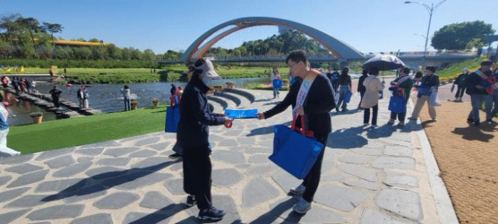이날 홍보 참가자들은 꽃강길 상상정원과 음악분수 주변을 무대로 도로명주소 사용 활성화에 주력했다.