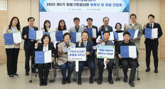 제5기 청렴 구민감사관에는 다양한 전문 분야의 주민 20명을 위촉했으며, 이들은 오는 2027년 4월 18일까지 2년간 활동할 예정이다.