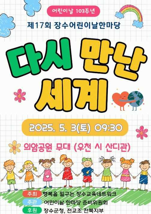 최훈식 군수는 “어린이날을 맞아 아이들과 가족 모두가 함께 즐기고 추억을 쌓을 수 있는 뜻깊은 시간이 되길 바란다”며 “앞으로도 어린이들이 건강하고 행복하게 성장할 수 있도록 노력하겠다”고 말했다.