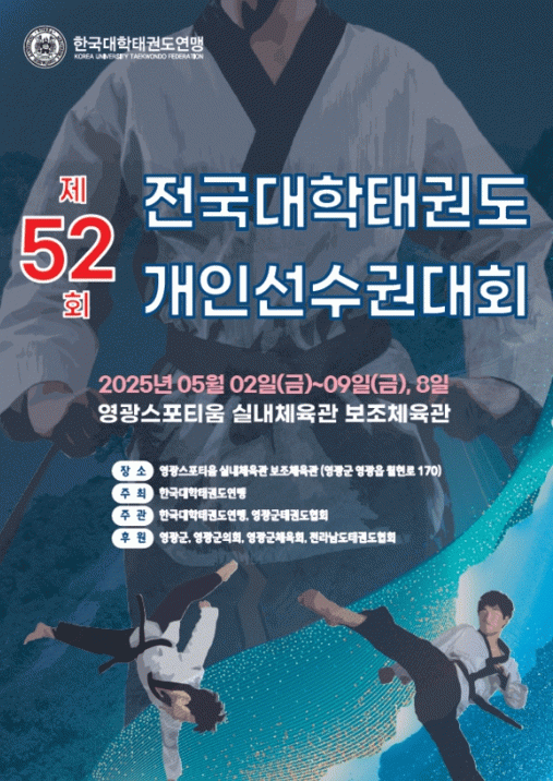 한편 전국대학태권도 개인선수권 대회는 현장 무료관람은 물론 유튜브 “태권저널TV”를 통해 생중계로 시청이 가능하다.