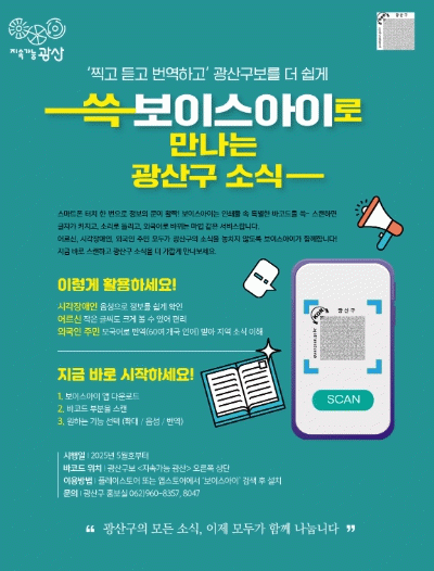 광산구 관계자는 “보이스 아이 도입은 정보 취약 계층에 구정 소식을 전하는데 도움 될 것”이라며 “앞으로도 정보 사각지대 해소를 위해 노력하겠다”고 전했다.