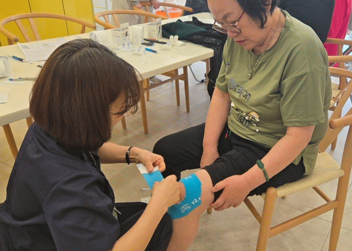 건강 1000수 테이핑 사업은 시민들의 근골격계 건강을 지키며 활력 있게 천수를 누리는 삶을 응원하는 의미를 담았으며, 장시간 서 있거나 반복적인 동작을 수행하는 사람들을 찾아가 건강에 도움을 주는 현장 중심형 서비스다.