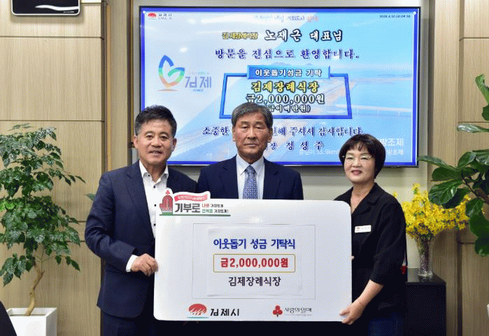 시는 김제장례식장이 30일 이웃돕기 성금 200만 원을 기탁했다고 밝혔다.