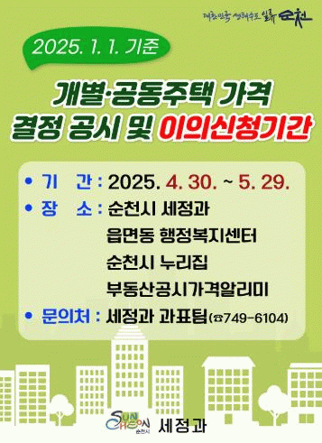 개별주택가격은 시 누리집과 부동산공시가격알리미를 통해 열람할 수 있으며, 가격에 대한 이의가 있는 소유자 및 이해관계인은 이의신청서를 작성하여 5월 29일까지 시청 세정과 및 읍면동 행정복지센터를 직접 방문하거나 인터넷 부동산공시가격알리미를 통해 제출하면 된다.