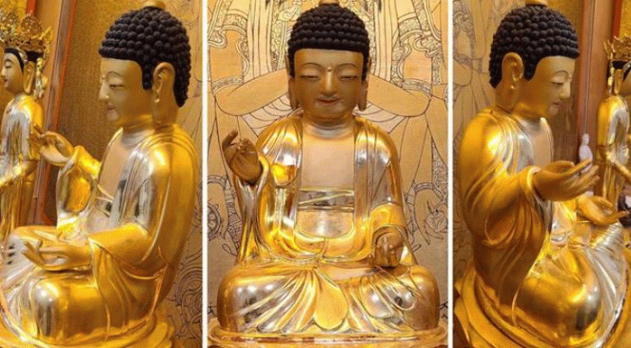상호는 방형에 살집이 있고 눈은 아래를 향해 살짝 내려뜬 반개한 형식이다.