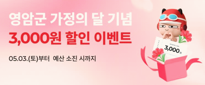 영암군의 이번 이벤트는 하루 1회 먹깨비로 배달을 주문·결제하고 현금·월출페이·카드로 결제하면 3,000원 할인쿠폰을 주는 내용이다.