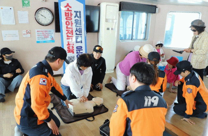 진도소방서는 진도항 여객선 터미널과 선상에서 소방안전교육 지원센터를 운영하며, 여객선 이용객을 대상으로 심폐소생술(CPR), 자동심장충격기(AED) 사용법, 하임리히법(기도폐쇄 응급처치), 소화기 사용법, 화재 대피 요령 등을 직접 체험할 수 있도록 했다.