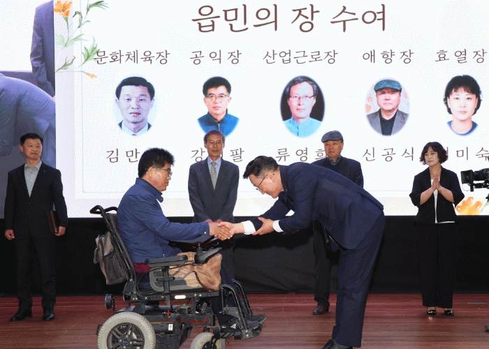 읍민의 장은 5개 부문에서 김만성(문화체육장), 강신팔(공익장), 류영희(산업근로장), 신공식(애향장), 정미숙(효열장)씨가 각각 수상했으며, 국회의원 표창패는 읍 주민자치위원 전영희 씨가 우수이장 표창패는 원종삼(양지마을)⋅황인국(사인동마을), 읍 주민자치위원 표창패는 문남희 씨가 수상했다.