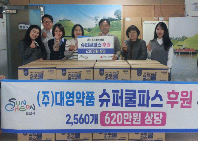 파스를 후원한 ㈜대영약품 박종선 대표이사는 “지역사회를 통해 회사가 성장할 수 있었다”며, “받은 사랑을 지역사회에 돌려주고 나눔문화 확산에 동참할 수 있어 기쁘다”고 말했다.