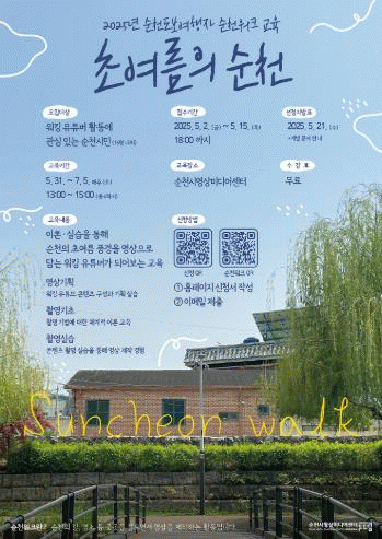 올해는 다양한 시민들의 참여 확대를 위해 교육형으로 진행되며, ‘초여름의 순천’을 주제로 콘텐츠 기획 및 제작에 필요한 교육을 받을 수 있다.