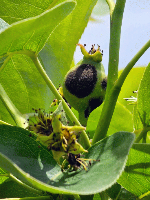흑성병은 곰팡이균으로 낙엽과 눈의 비늘 속에서 월동한다. 어린잎이나 줄기, 과실에 그을음의 병반이 생기는 과수병으로 4월 하순 경에 주로 발생하기 시작해 5월~7월에 발병 최성기를 이룬다.