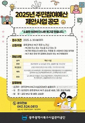 나기백 이사장은 “주민참여예산 제도는 참여 민주주의를 활성화하고 북구 발전에 의견을 제시할 수 있는 좋은 기회”라고 말하며, “작은 제안이 큰 변화를 만들 수 있는 기회인 만큼, 구민들의 적극적인 참여와 관심을 부탁드린다”고 말했다.