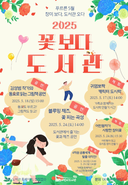 또한, 18일과 25일에는 어린이들의 독서 흥미를 높여줄 ‘폴짝폴짝 실감형 동화체험’(3D 5면)도 특별 운영한다.