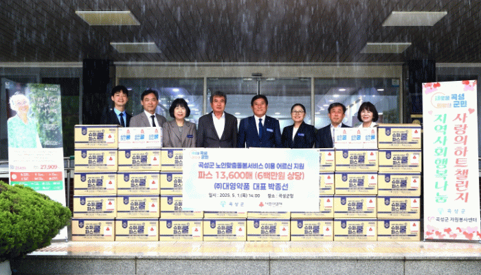 조상래 군수는“어려운 경기 상황에서도 지역사회 취약 어르신들에게 온정을 베풀어 주신 대영약품 박종선 대표에게 깊은 감사의 뜻을 전하며, 기부품이 노인맞춤돌봄서비스 대상 어르신들에게 잘 활용될 수 있도록 하겠다”라고 밝혔다.