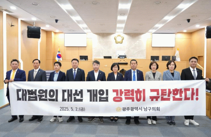 남구의회 의원들은 21만 남구민을 대표하여 “대법원이 정치적 판단이 아닌 법률에 입각한 공정한 판단을 내릴 것, 국민의 주권과 민주주의 가치를 훼손하는 정치 개입을 즉시 중단할 것, 그리고 이번 사태에 대해 국민 앞에 명확히 설명하고, 책임 있는 자세로 임할 것”을 강력히 촉구했다.
