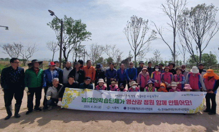 지난 4월 25일 농업인 학습단체인 생활개선회와 농촌지도자회는 합동으로 영산강 정원(나주시 영산동 757-1)에서 꽃 심기 행사를 진행했다.