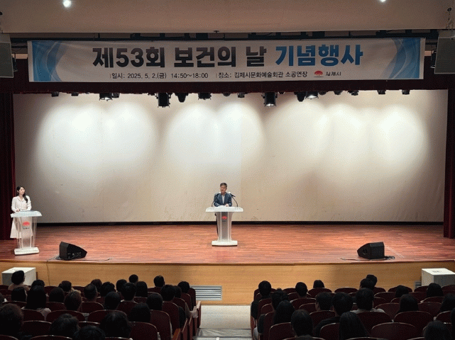정성주 김제시장은 기념사를 통해 보건의료인들의 헌신에 대한 감사의 마음을 전하고, “제53회 보건의 날 행사를 맞아 지역 실정에 맞는 보건 서비스, 누구나 편리하게 누릴 수 있는 돌봄 시스템, 예방 중심의 건강관리 정책을 통해 시민들이 더 행복한 미래를 함께 만들어 가자”고 말했다.