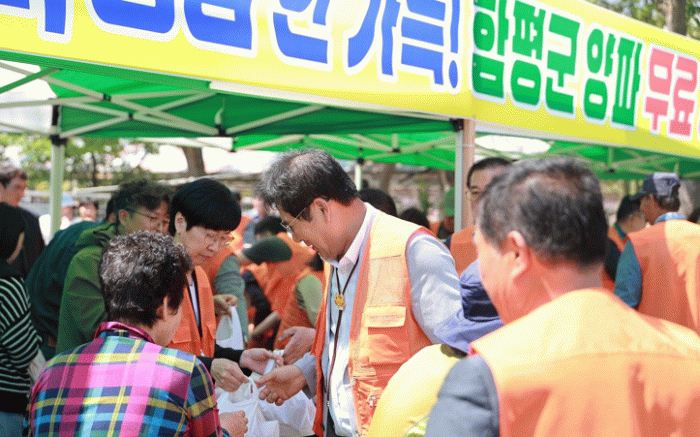 함평군은 6일 “(사)전국양파생산자협회 함평군지부가 지난 2일 양파 소비 촉진과 농가 지원을 위해 함평나비대축제를 방문한 관광객에게 함평에서 직접 생산한 1.5㎏ 양파 1,500망을 무료로 제공했다”고 밝혔다.