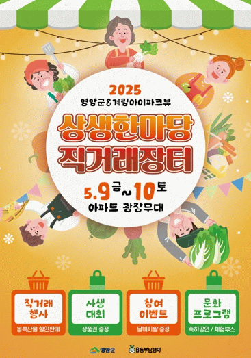 영암군이 9일과 10일 광주 동구 계림아이파크SK뷰 입주자대표회의와 함께 아파트 내 썬큰광장에서 ‘2025 도시-농촌 상생 한마당 직거래장터’를 개최한다.