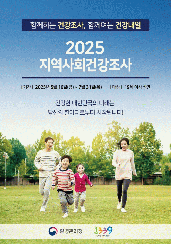 함평군은 7일 “질병관리청과 전국 보건소가 공동으로 수행하는 국가승인 통계조사인 ‘지역사회건강조사’를 5월 16일부터 7월 31일까지 약 두 달 반 동안 실시된다”고 밝혔다.