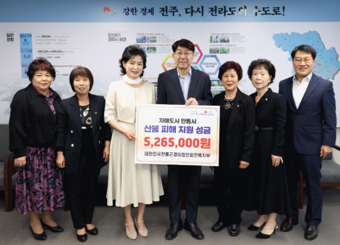 이날 기탁한 성금은 산불로 큰 피해를 입은 안동시민을 위로하고 재난 극복을 돕기 위해 전북지부 소속 회원들이 마련한 것으로, 경북사회복지공동모금회를 통해 안동시 산불 피해 복구와 이재민 긴급구호비로 사용될 예정이다.