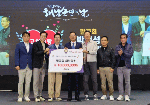 우선 팔십까지 팔팔하게 건강하자는 취지로 결성된 운동모임인‘팔공회’에서 고향사랑기부금 1,000만원을 기부했다. 팔공회 기부는 지난해 1,000만원에 이어 두 번째로, 해남 출신 박명성 예술감독을 비롯해 배우 유동근·정보석, 야구감독 선동열, HMG그룹 김한모 대표, BHC 임금옥 대표이사가 전달식에 직접 참석했다.