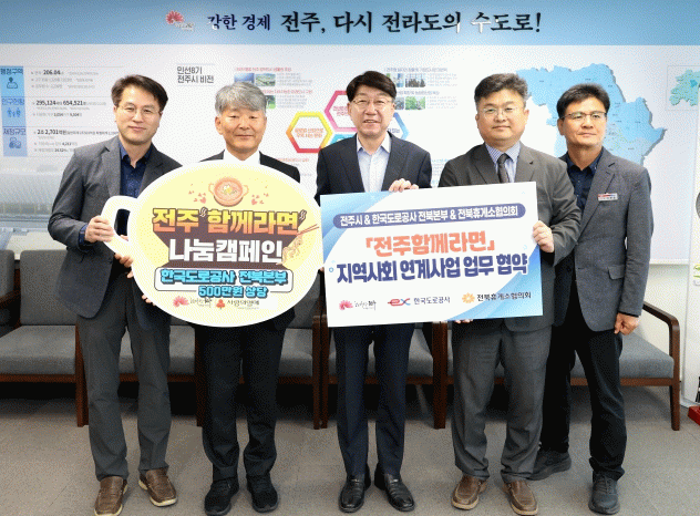 그 첫걸음으로 한국도로공사 전북본부는 이날 전주함께라면 나눔문화 활성화를 위한 성금 200만 원과 라면 100박스를 기탁했다.