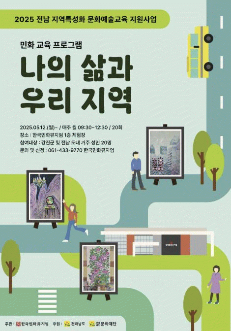 지역특성화 문화예술교육은 전라남도와 (재)전라남도문화재단의 후원을 받아 진행되는 사업이다. 이 사업은 지역의 우수한 문화 자원을 바탕으로 한 문화예술교육 프로그램을 운영해 모든 연령과 세대가 수준 높은 문화생활을 누릴 수 있도록 한다. 한국민화뮤지엄은 지난 2024년에도 해당 사업에 선정돼 ‘민화 강진 특보’ 프로그램을 운영했다.