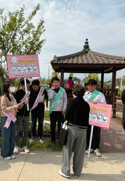 최근 반려견 동반 산책의 증가로 반려견의 배변 미수거, 목줄 미착용에 대한 민원이 증가하고 있어, 향후 군은 민원 다발 지역인 매창공원과 아파트 인근 산책로 등을 대상으로 불시에 집중적으로 단속할 방침이다.