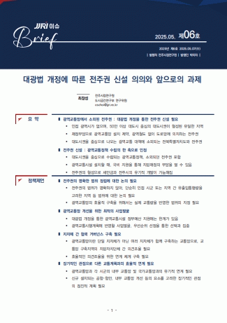 연구원은 이러한 대광법 개정에 대해 전주권의 광역교통망 개선을 위한 중요한 진전으로 평가한 뒤, 지역민이 실제 체감할 수 있는 사업 수행을 위한 과제를 제시했다.
