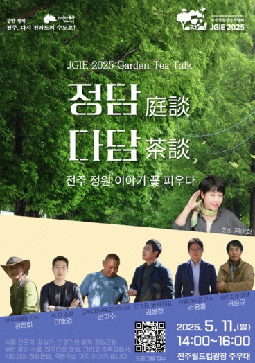 전주시는 오는 11일 오후 2시, 전주월드컵광장 내 정원산업박람회장 메인무대에서 가든티 토크쇼인 ‘전주 정담(庭談) 다담(茶談), 전주 정원 이야기 꽃 피우다’가 개최된다고 8일 밝혔다.