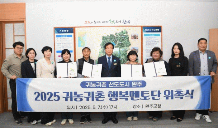 유희태 완주군수는 “이번 사업이 예비 및 초보 귀농귀촌인에게 길잡이 역할을 할 것으로 기대된다”며 “귀농귀촌 1번지 완주군으로의 귀농귀촌을 희망하시는 분들은 멘토단에게 도움을 요청하면 초기 정착의 어려움을 해소하는데 도움이 될 것”이라고 말했다.