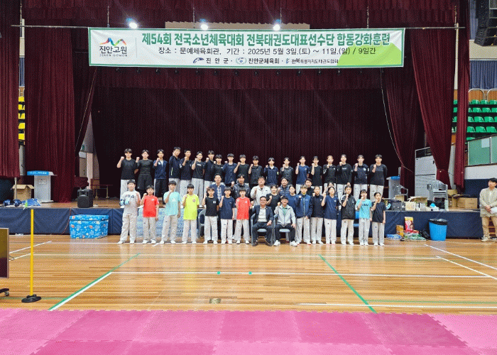 진안군에 따르면 지난 3일 태권도 대표 선수단 52명이 진안 문예체육회관과 공설운동장을 중심으로 9일간의 전지훈련을 시작했다. 선수단은 오는 24일부터 27일까지 경남 김해시에서 열리는 전국소년체전에 참가할 예정이다.