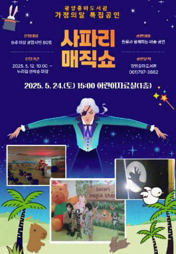 공연은 무료로 진행되며, 관람 신청은 5월 12일 오전 10시부터 광양시립도서관 누리집을 통해 선착순 80명까지 가능하다.
