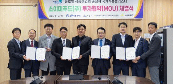 익산시는 8일 시청 소회의실에서 소이미푸드㈜와 국가식품클러스터 내 투자협약을 체결했다.