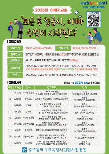 자세한 내용은 광주교육시민협치진흥원 학부모참여과로 문의하면 된다.