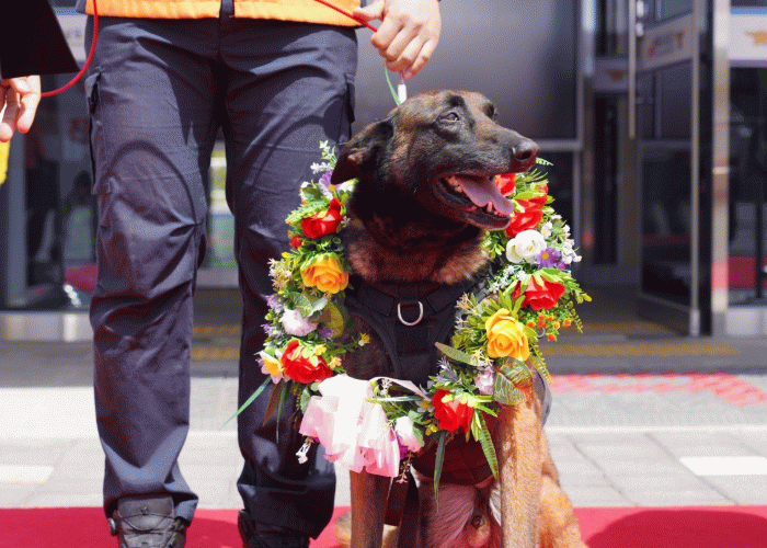 올해로 10살이 된 장고(10ㆍ벨지움마리노이즈)는 2018년 12월부터 구조ㆍ수색 임무에 투입되어 총 80회에 걸친 임무 수행과 생존자 1명 구조 등 탁월한 활약을 펼쳐왔다.