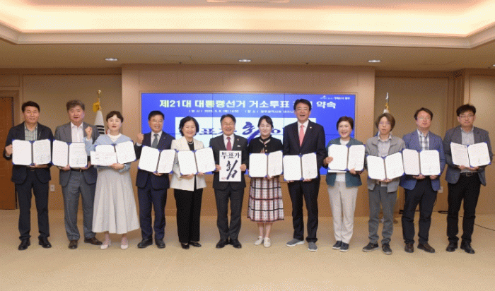 광주광역시는 8일 오후 시청 비즈니스룸에서 ‘제21대 대통령선거 거소투표 참여 약속 행사’를 개최했다.