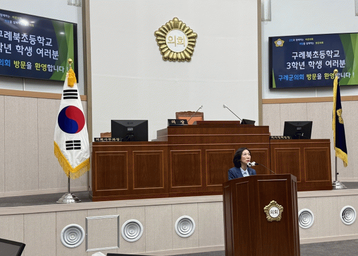 문승옥 부의장은 인사말을 통해 “우리 구례의 미래를 이끌어 갈 여러분이 직접 의회를 방문해 지방자치에 대해 배우게 되어 매우 뜻깊다”며 “오늘 이 경험이 앞으로의 꿈을 키우는 소중한 시간이 되기를 바란다”고 강조했다.