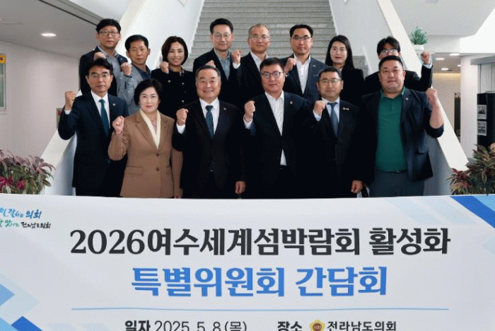 한편, '2026여수세계섬박람회 활성화 특별위원회'는 지난해 11월부터 최무경 위원장(더불어민주당, 여수4)을 중심으로 최동익(비례), 송형곤(고흥1), 신의준(완도2), 최미숙(신안2), 김인정(진도), 손남일(영암2), 최정훈(목포4), 류기준(화순2), 진호건(곡성) 의원으로 구성되어 박람회의 성공적인 개최에 필요한 사항을 지원해 왔으며 5월 14일부로 공식적인 활동을 마무리할 예정이다.