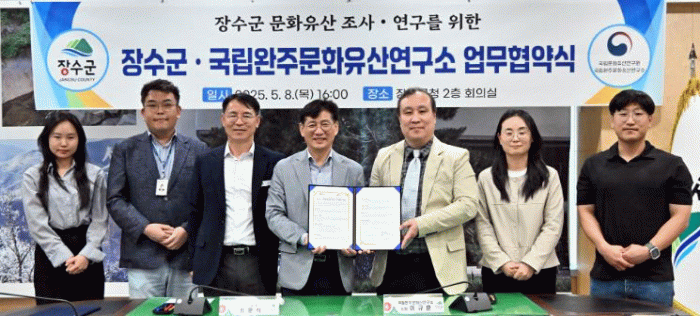 최훈식 군수는 화답으로 “이번 업무협약이 초석이 되어 장수군이 고대사 속 중심지로서 지닌 위상과 문화유산의 가치가 재조명되길 바란다”며 “국립완주문화유산연구소의 적극적인 협력을 기대한다”고 밝혔다.