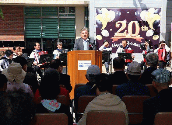 이번 행사는 노인복지관의 지난 20년간의 성과를 기념하고 지역사회 어르신들의 노고에 감사를 전하기 위한 자리로 마련하여, 기념공연, 취미반 ▲아코디언, ▲하모니카, ▲실버태권도, ▲라인댄스, ▲한국무용, ▲스포츠댄스, ▲노래교실 어르신들의 장기자랑, 나만의 인생사진관, 청춘극장 및 수박게임 등 다양한 체험활동을 진행하여 참여자와 관람객 모두가 어우러지는 장으로 운영됐다.